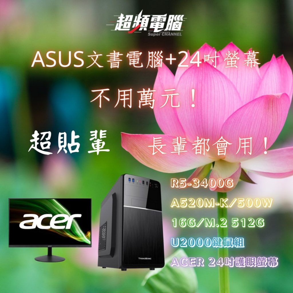 【長輩瘋傳】您沒看錯!ASUS文書電腦+24吋螢幕,不用萬元讓您帶回家~