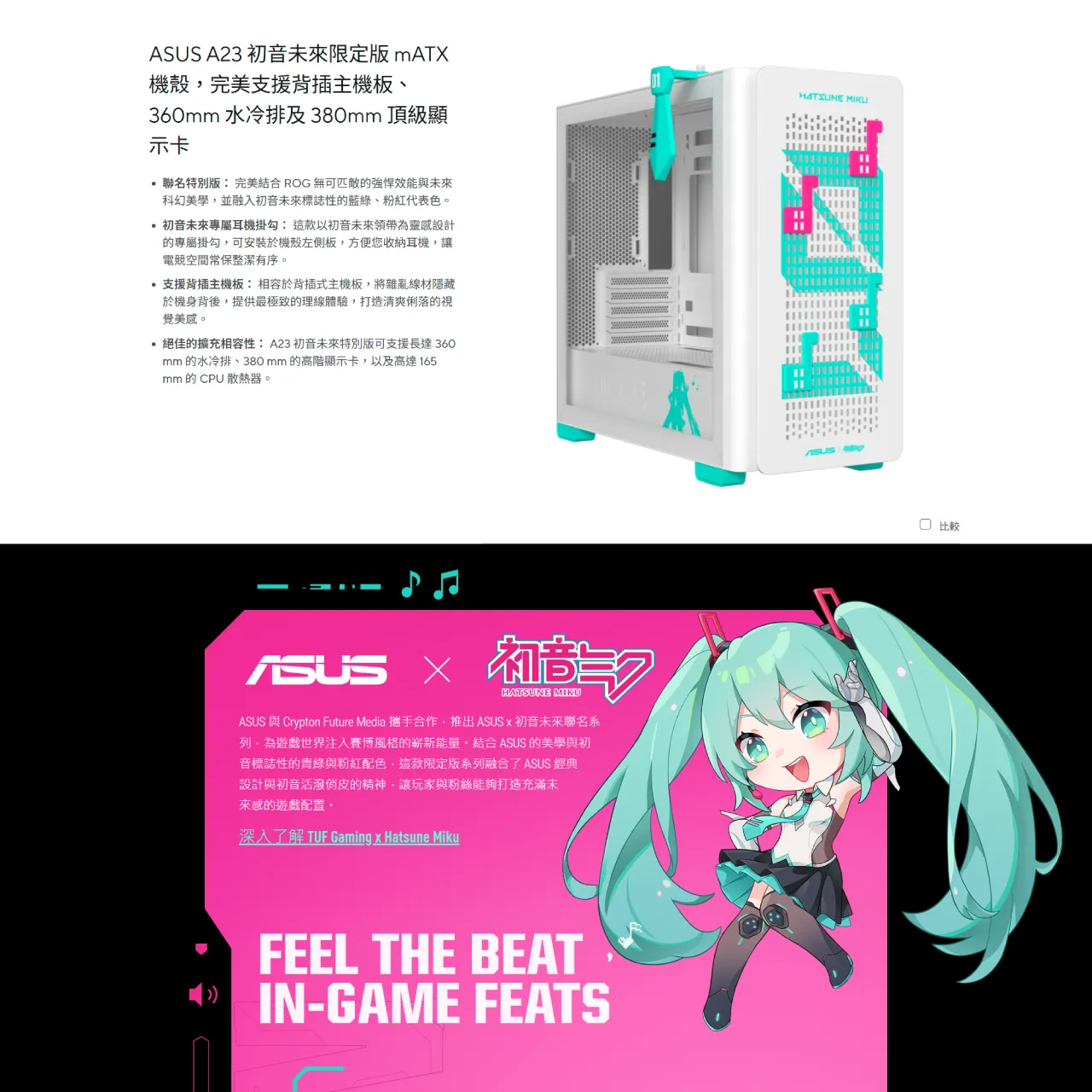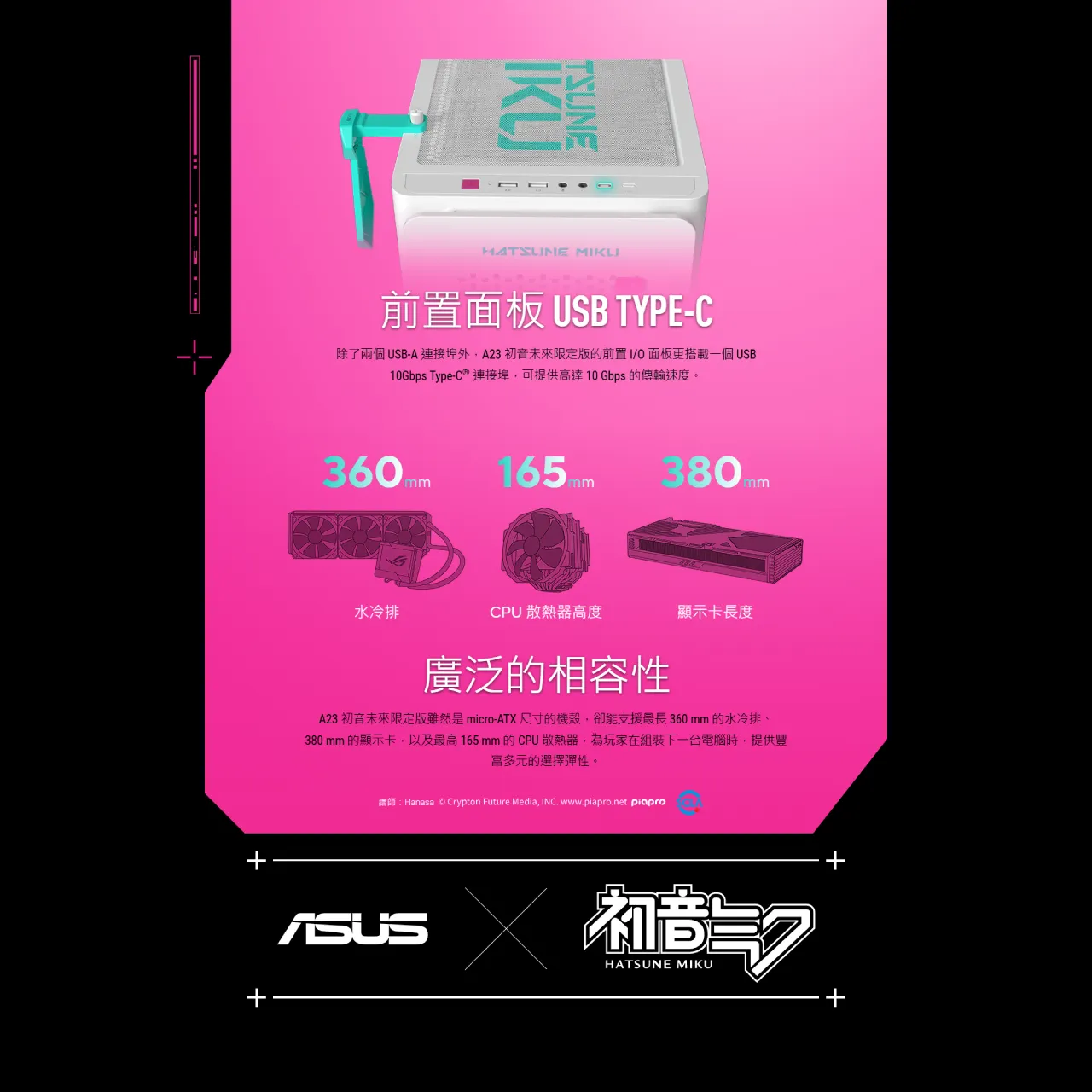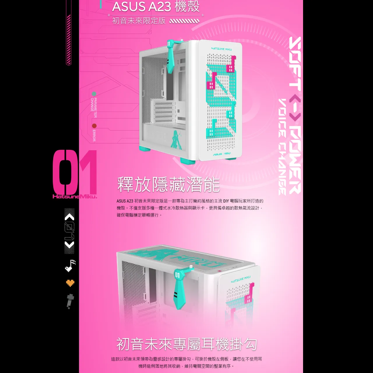 【會員再折 2%】06A02081 ASUS 華碩 A23 玻璃透側機殼 Hatsune Miku 初音未來特別版