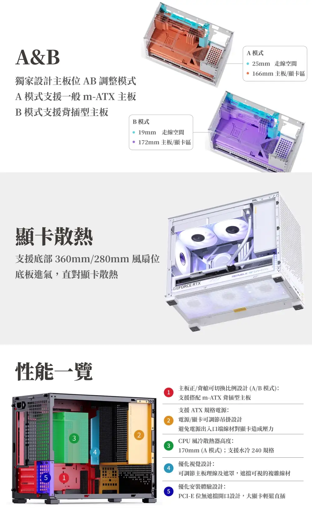 AB 調整模式設計,支援一般 m-ATX 主板(A模式)及背插型主板(B模式)