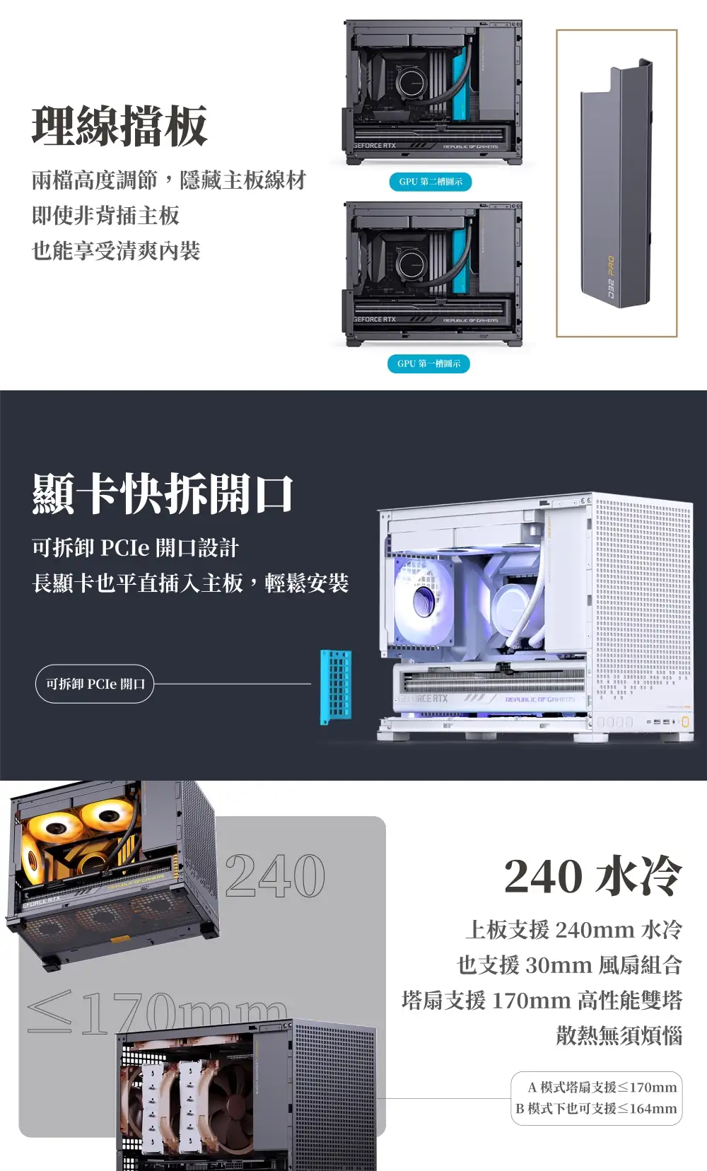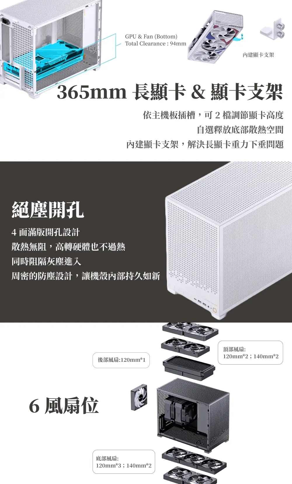 優化顯卡散熱,底部支援 360/280mm 風扇位,直對顯卡進氣,散熱效率極高