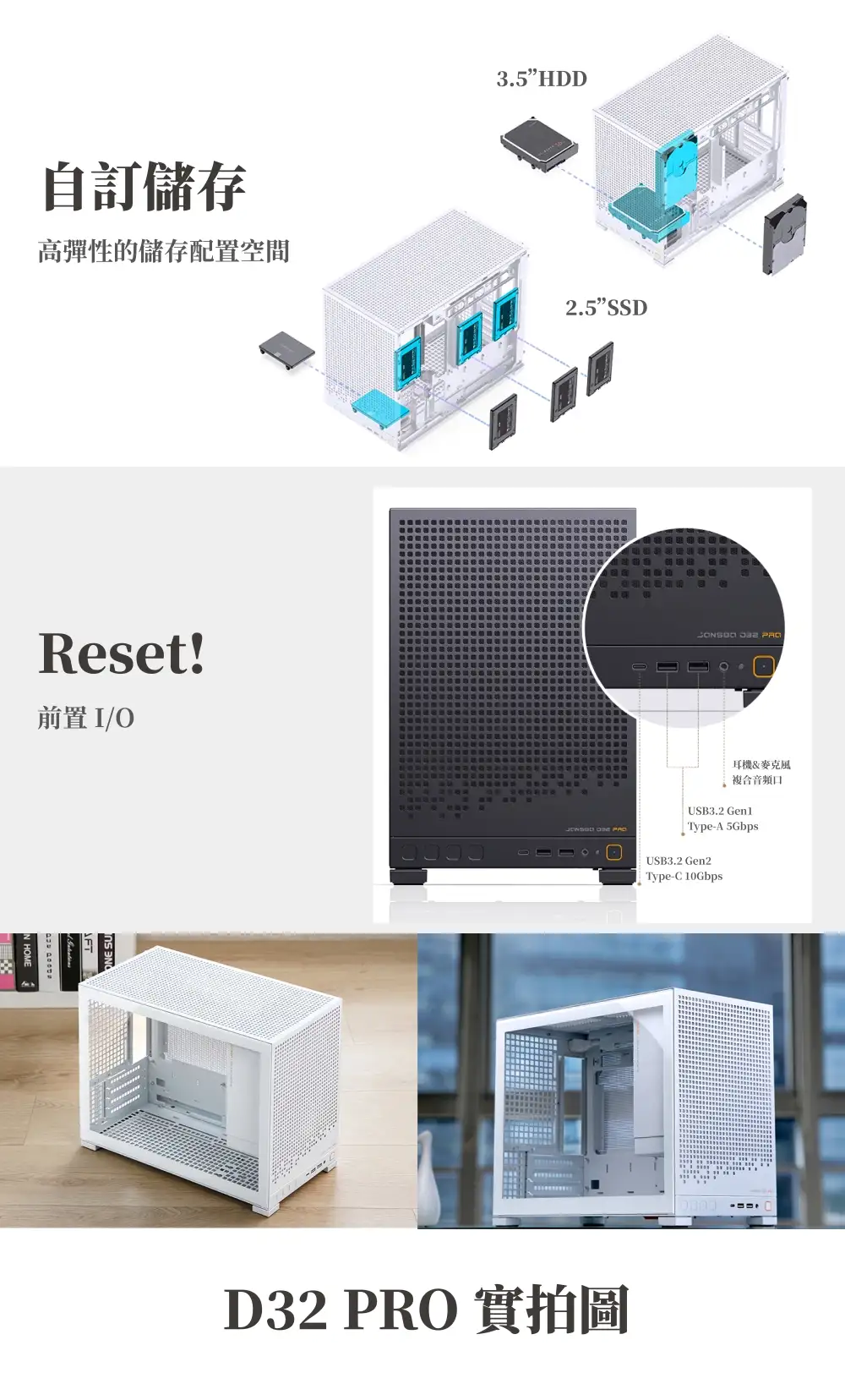 / 【會員再折 66】06J22038 JONSBO 喬思伯 D32 PRO 桌面精品級機殼 黑/白(M-ATX/快拆顯卡/支援240水冷/長顯卡/理線擋板/BTF背插)