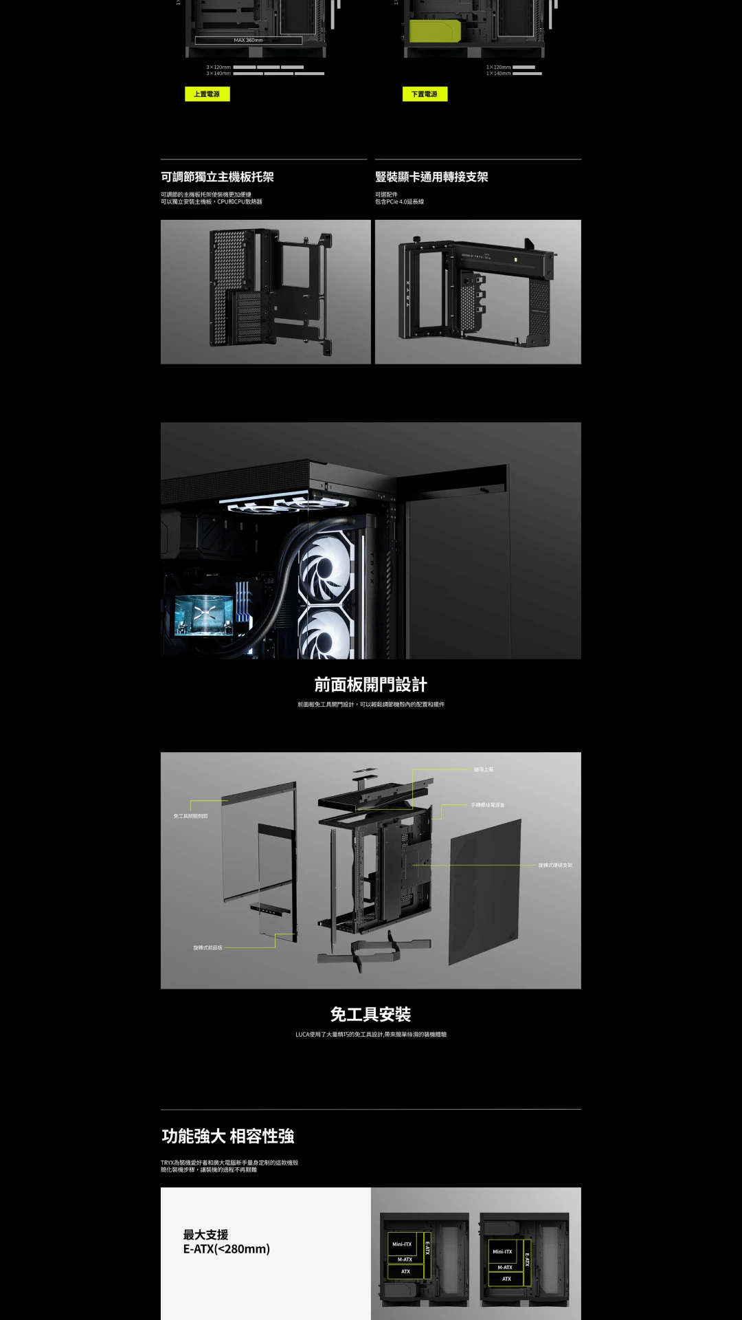 模組化主板托盤設計,支援上下調整,方便裝機操作