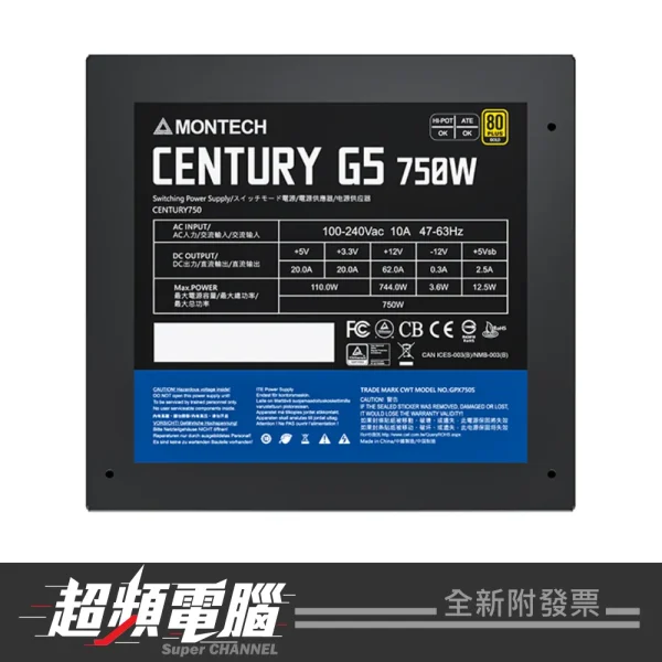 07T68008 MONTECH 君主 Century 創世紀 G5 750W 金牌 電源供應器(ATX3.0/PCIe5.0/10年保固)