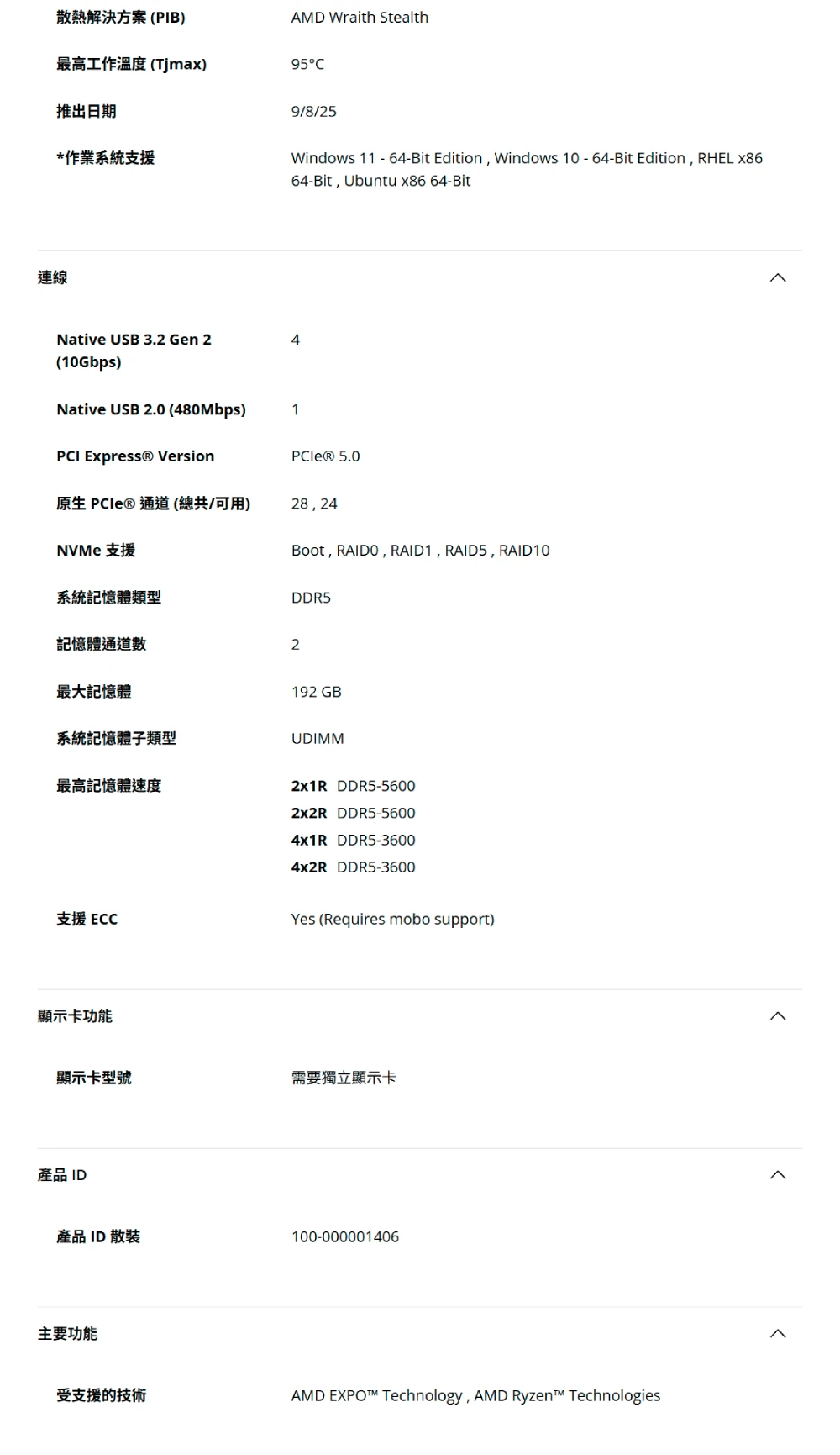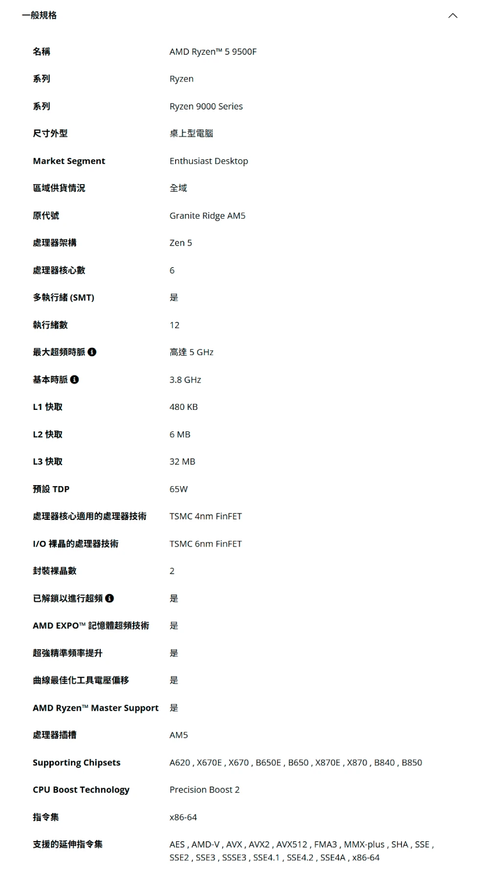 AMD Ryzen 5 9500F 採用新世代效能導向架構,具備優異的單核心與多核心運算能力,無論是電競遊戲、日常辦公、多工應用或影音處理,都能提供流暢且穩定的效能表現,是中高階電腦組裝的理想選擇。