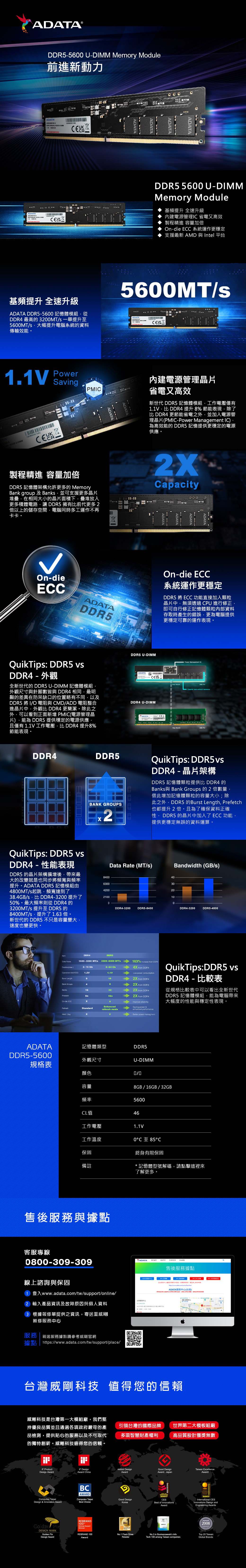 / 10A07130 ADATA 威剛 32GB DDR5-5600 桌上型記憶體(AD5U560032G-S)