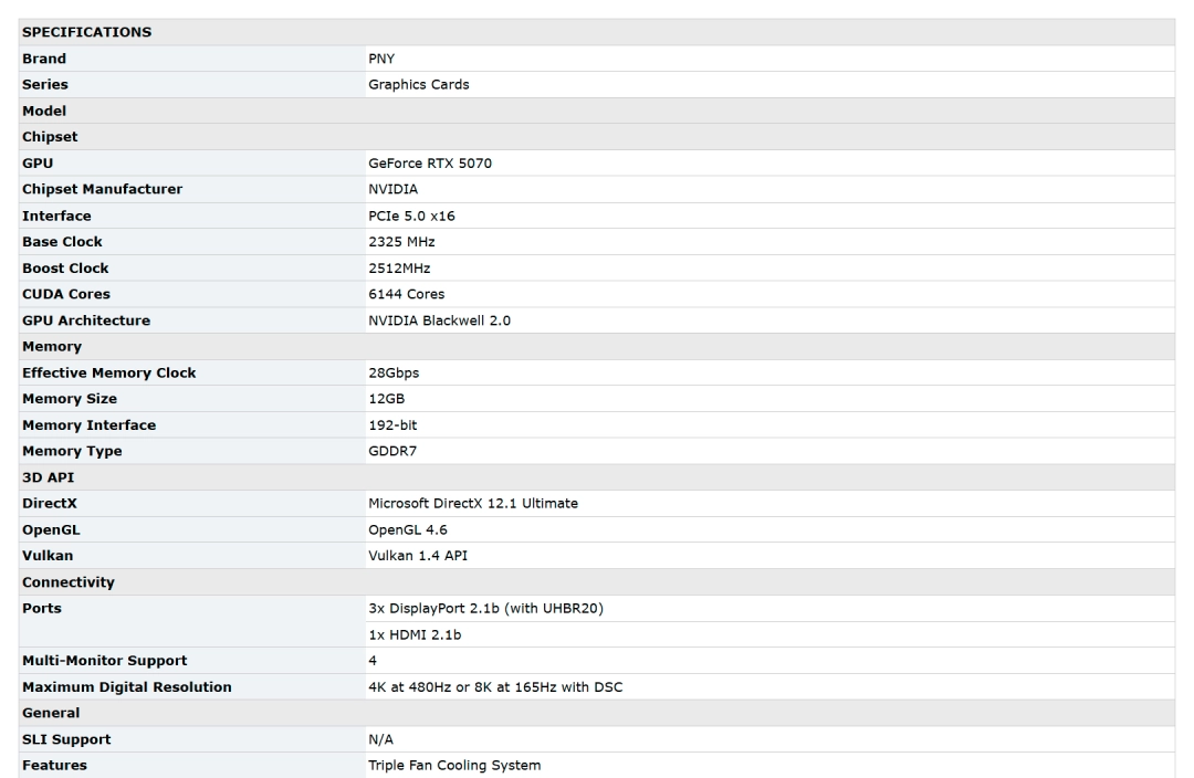 11P10011 PNY 必恩威 RTX5070 12G Triple Fan 顯示卡(VCG507012TFXPB1)