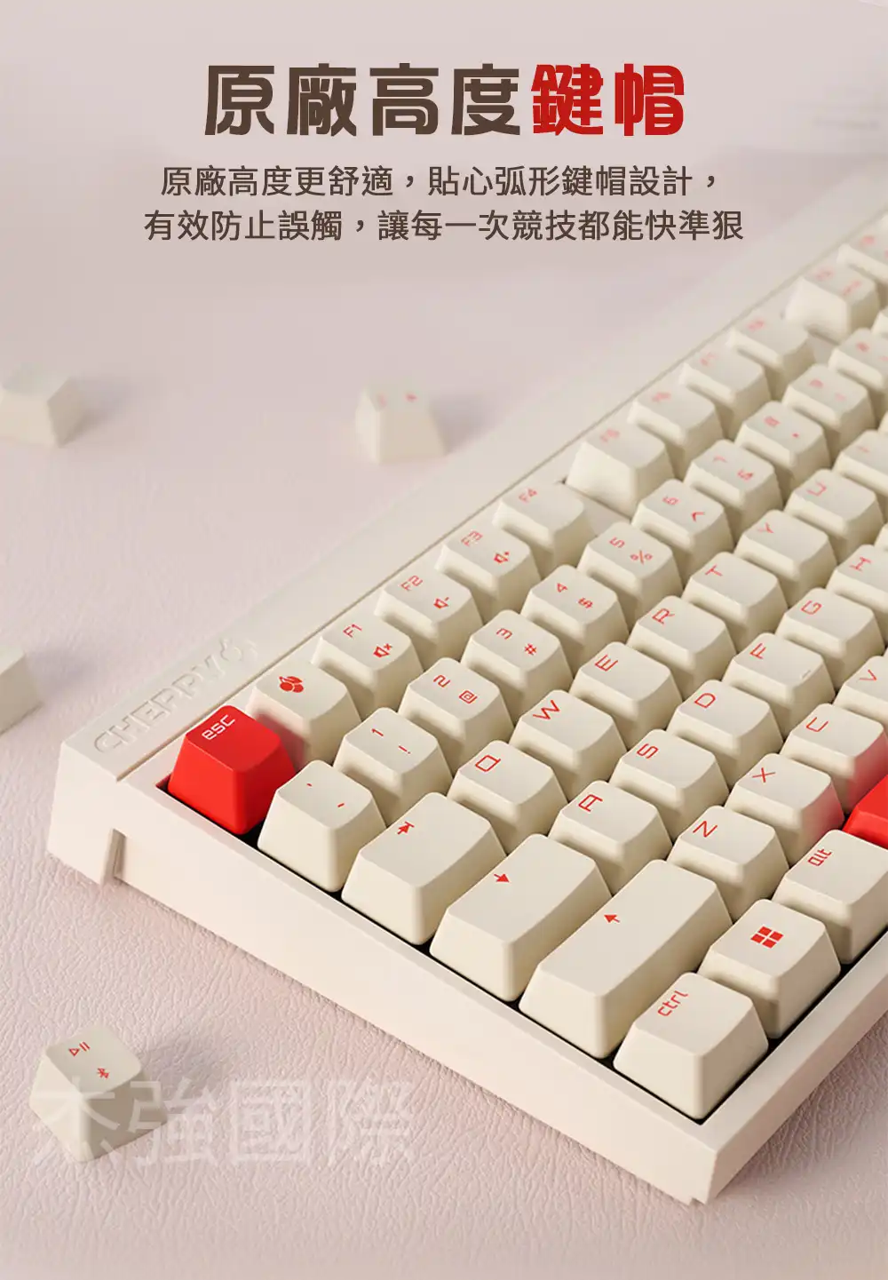 - 電源按鈕設計在鍵盤頂部,位置順手開關,且開關設計與鍵盤表面平行,減少玩家誤觸。