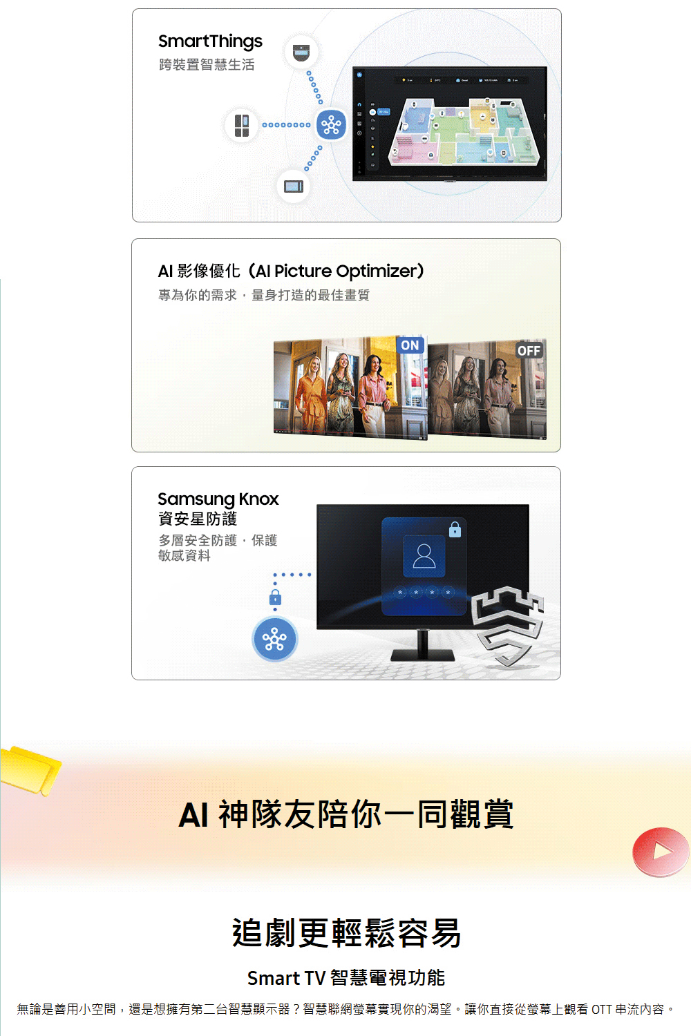 Samsung S32FM703UC 為一款專為現代使用者打造的 32 吋 4K UHD 智慧螢幕,