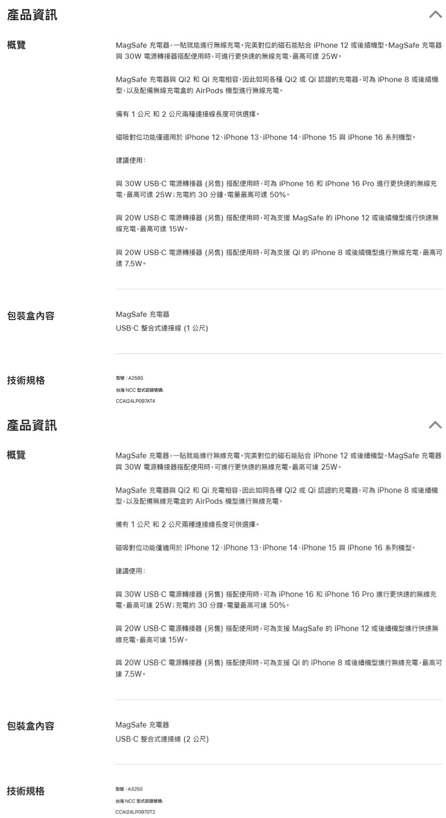 63A27004 Apple MagSafe 充電器 2024(1M/2M) 數量