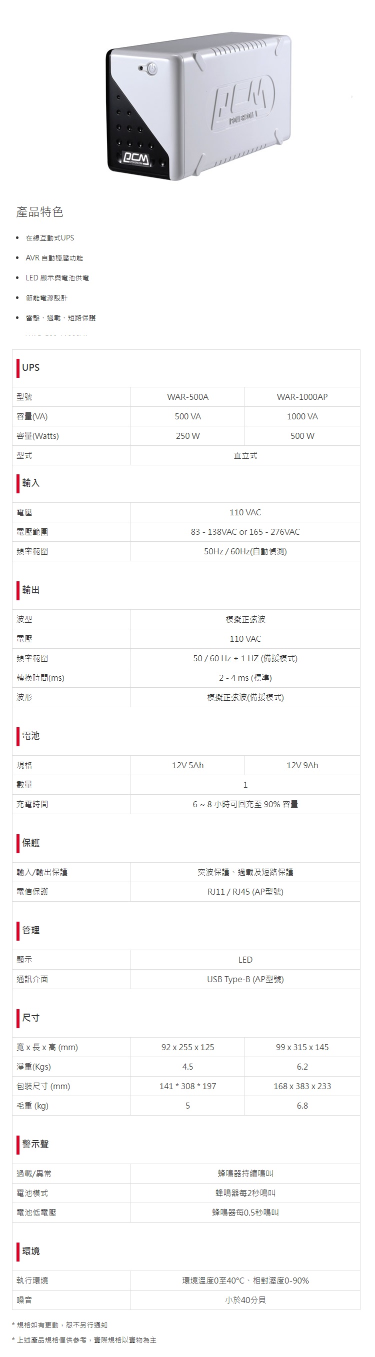 63C11004 科風 UPS WAR-500A 在線互動式不斷電系統 數量