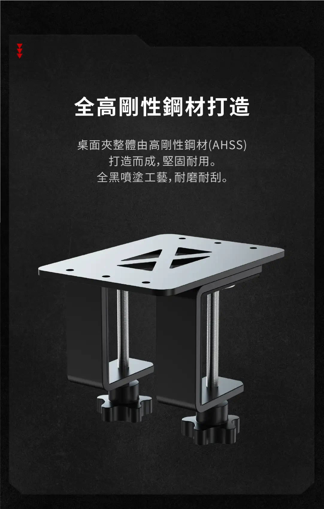 配合桌面夾可將手剎 及換擋器夾持在桌面使用,雙頂點夾持設計,固定更牢固。