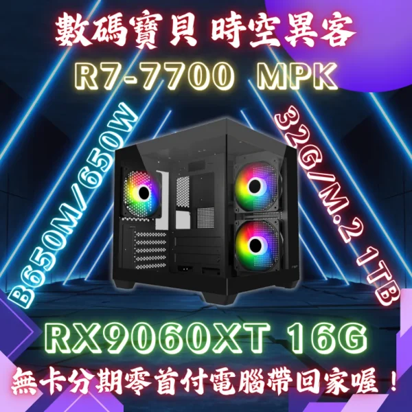 AMD x ASUS【A粉】電競機參戰!【時空異客】R7 RX9060XT 電競套裝機(R7-7700/RX9060XT-16G/16G*2/1TB SSD)