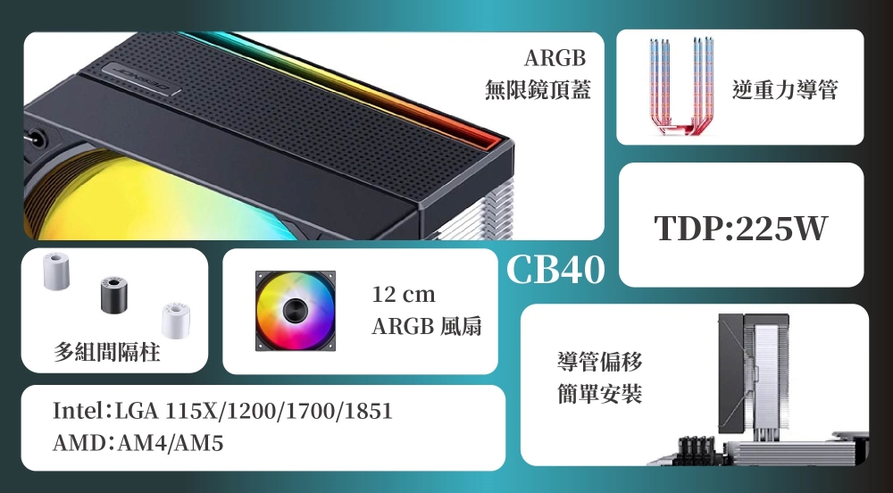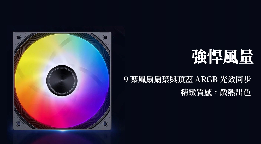 - 9 葉風扇扇葉與頂蓋 ARGB 光效同步,精緻質感,散熱出色