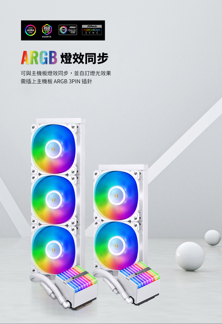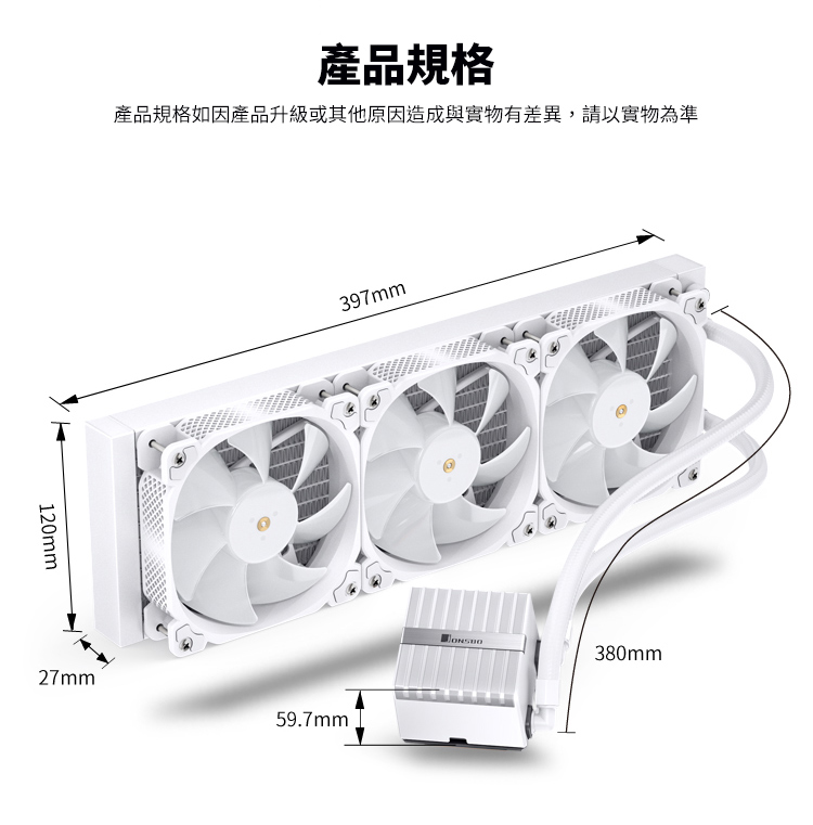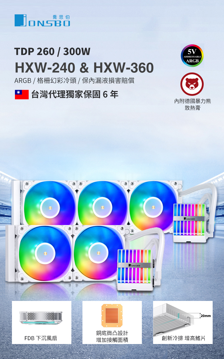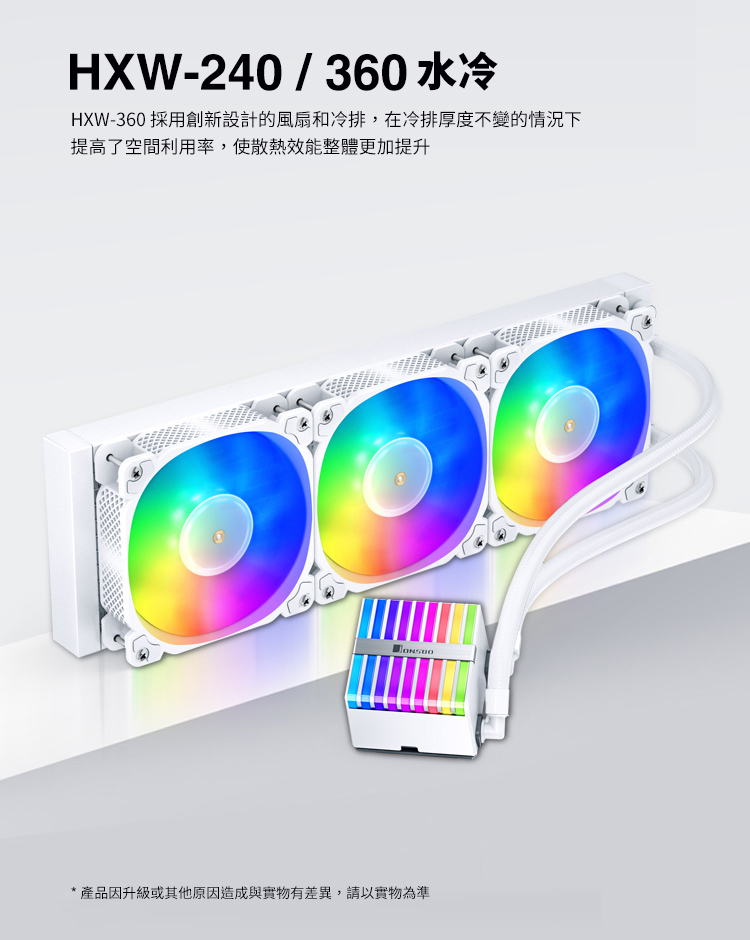 F8J22007 JONSBO 喬思伯 HXW360 水冷散熱器 白色(ARGB/下沉式風扇/12CM風扇*3/6年保/漏液賠償)