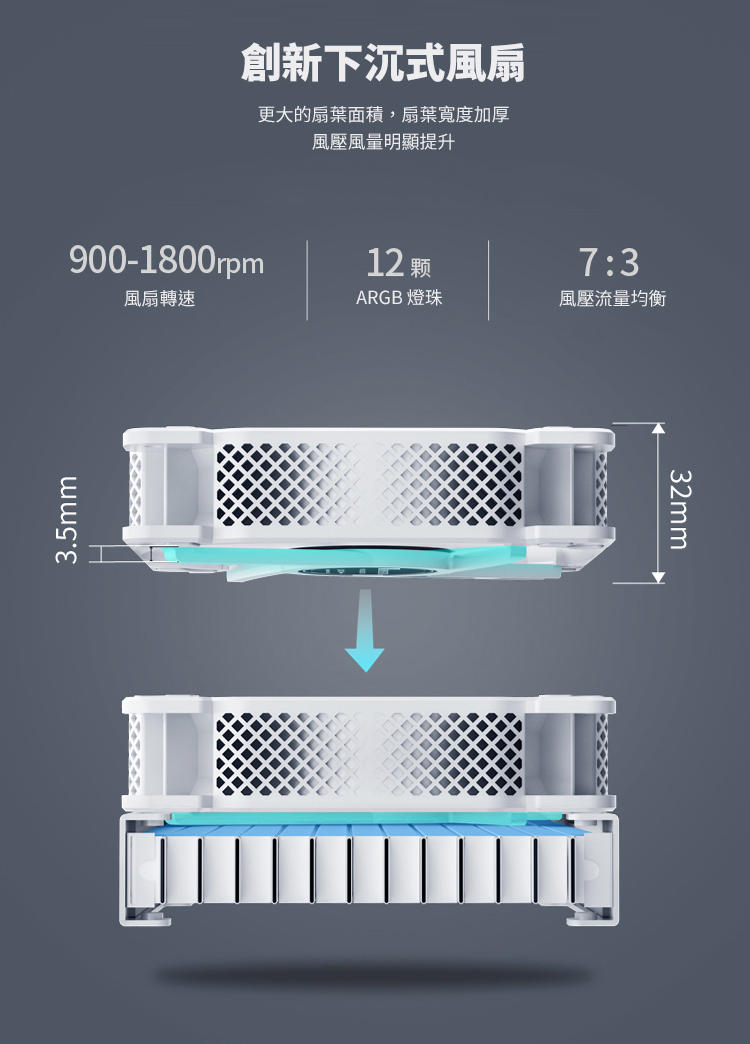下沉式水冷風扇及散熱鰭片增強