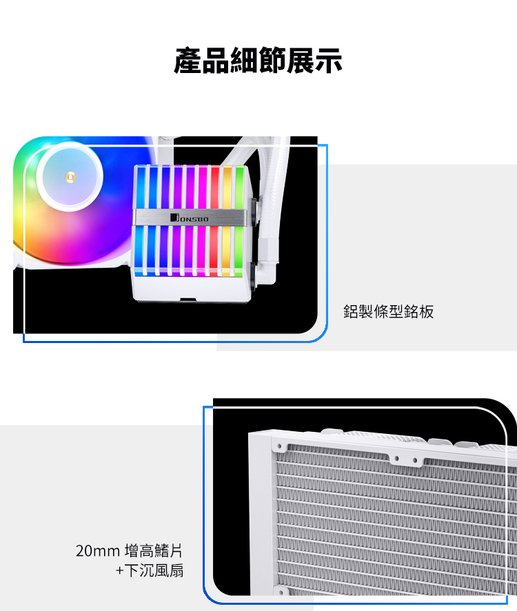 F8J22007 JONSBO 喬思伯 HXW360 水冷散熱器 白色(ARGB/下沉式風扇/12CM風扇*3/6年保/漏液賠償) 數量