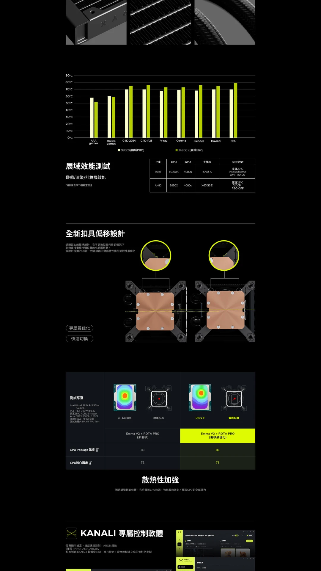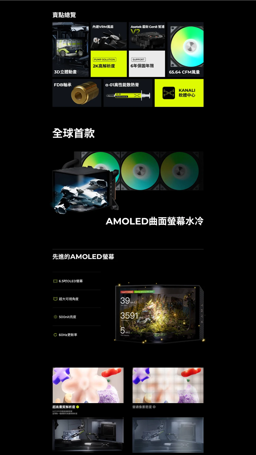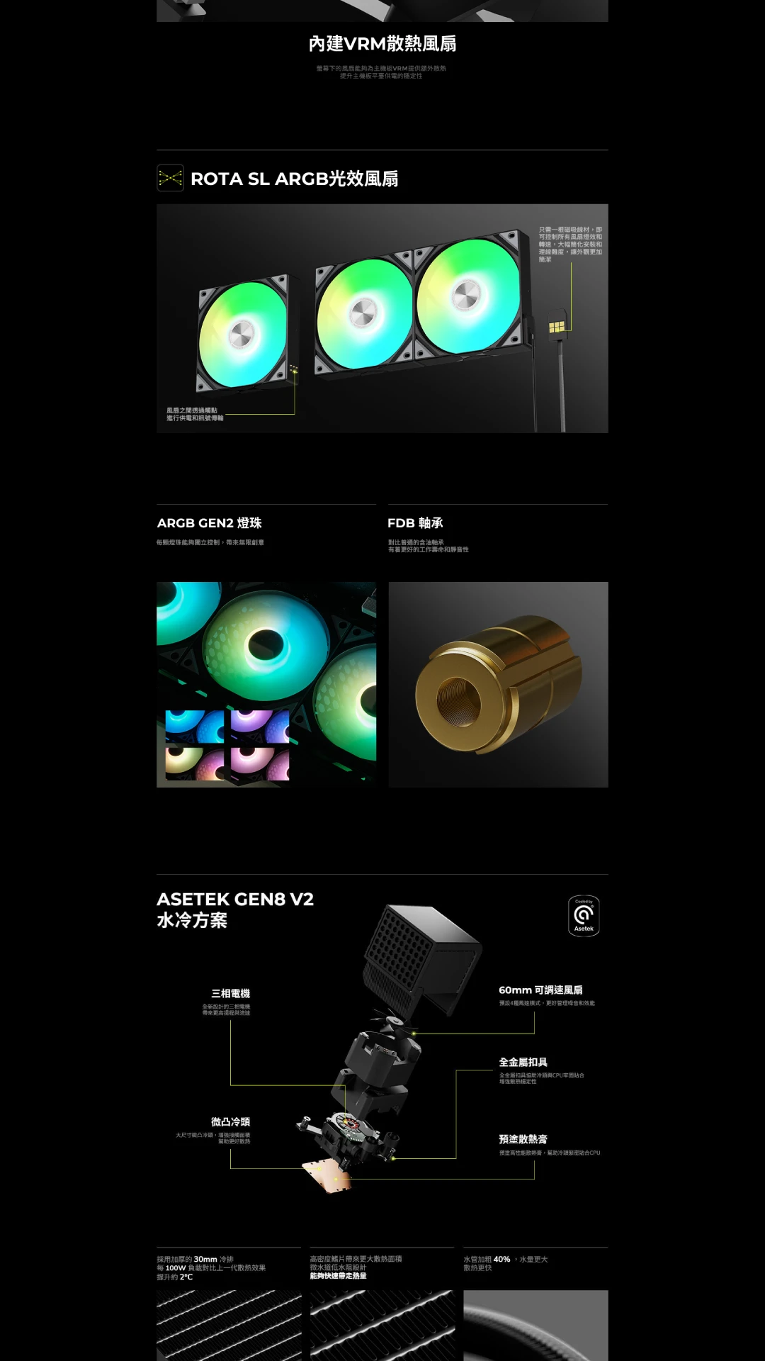 採用 Asetek 8.5 代幫浦方案,轉速範圍 800~3600 RPM,噪音值 25.3 dB(A)