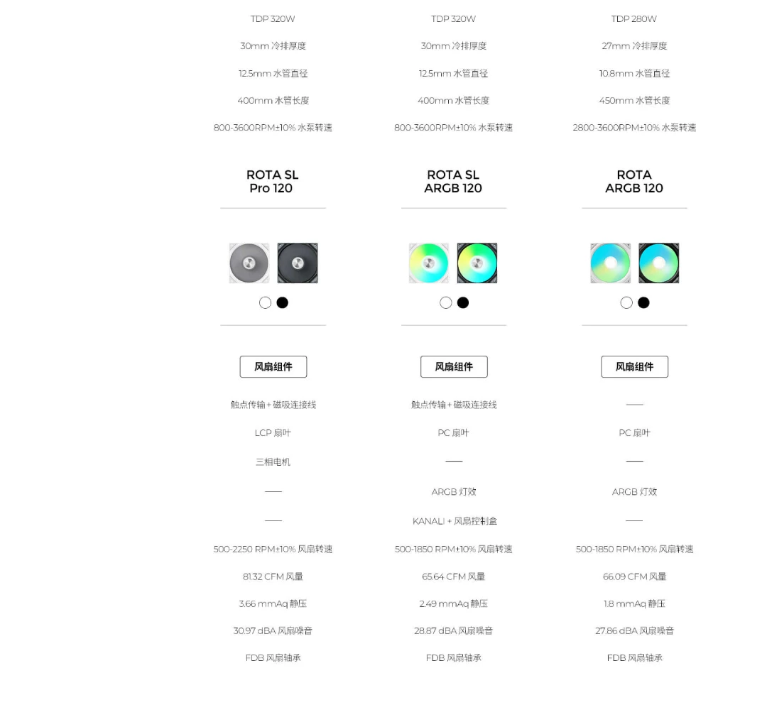 搭載 ROTA ARGB 120mm 風扇,轉速 500~1850 RPM,最大風量 65.64 CFM,最大靜壓 2.49 mmH₂O,最大噪音值 28.87 dB(A)
