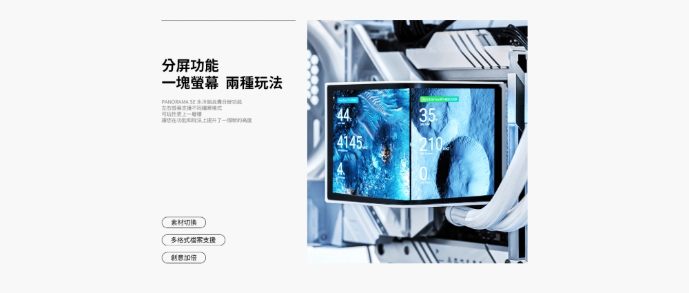 / 【會員再折 2%】F8T72011 TRYX Panorama SE 240 ARGB 裸視 3D 曲面液晶水冷散熱器 黑/白(Asetek Adela/反光塗層/防刮螢幕)
