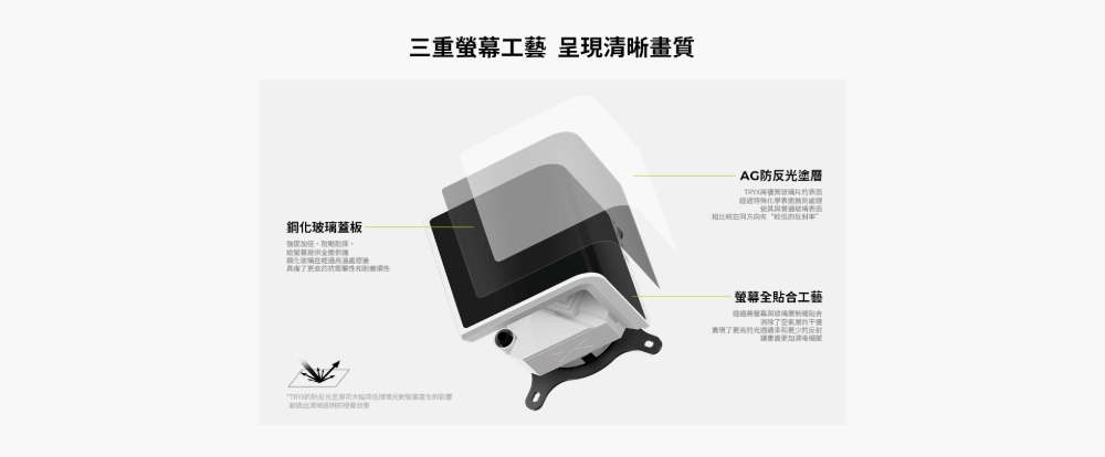 螢幕採用鋼化玻璃蓋板與 AG 防反光塗層,支援裸視 3D 效果