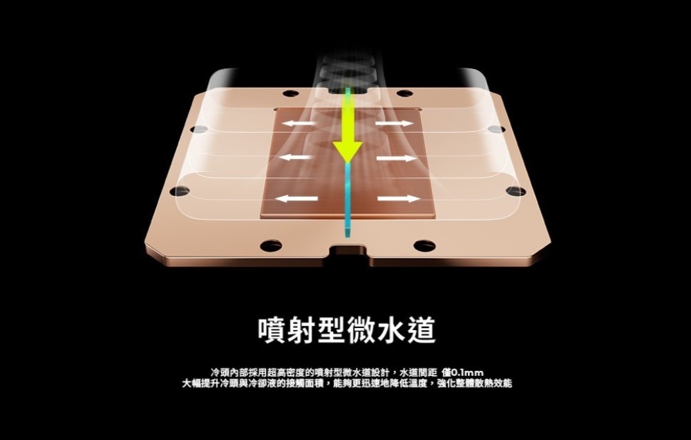 大面積微凸銅底、0.1 mm 噴射型微水道